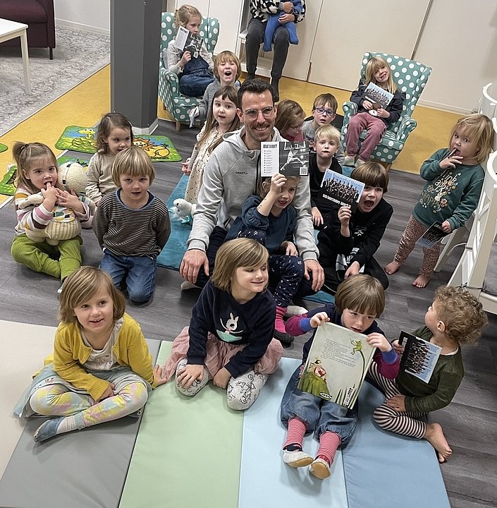 Und weil ein Vorlesetag allein nicht ausreicht, verlängerte die Fröbel-Kita im BMG den Tag um eine ganze Woche. Über die Dauer einer Woche werden Eltern zur Bring- und Abholzeit aus den Lieblingsbüchern der Kinder vorlesen u.a. auch auf Schwedisch.