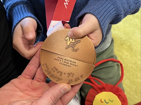 Paralympics-Sportler Marco Maier besuchte den Fröbel-Kindergarten Kleine Forscher in Freiburg: mit Medaillen, Skianzug und vielen Antworten auf neugierige Kinderfragen.