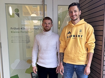 Paralympics-Sportler Marco Maier besuchte den Fröbel-Kindergarten Kleine Forscher in Freiburg: mit Medaillen, Skianzug und vielen Antworten auf neugierige Kinderfragen.